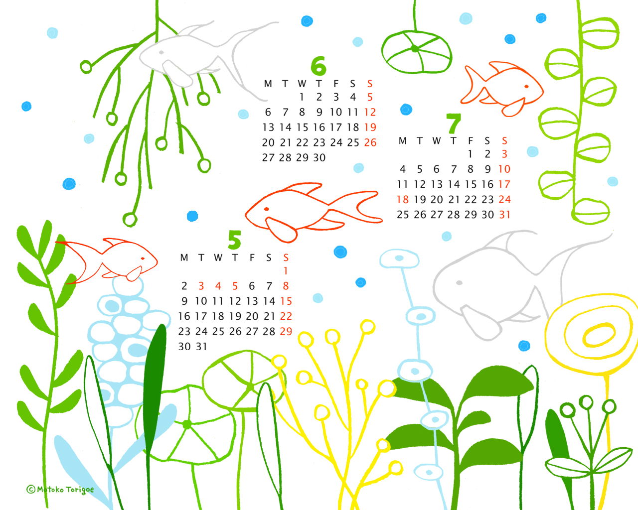 2011年5月6月7月カレンダーつきイラスト壁紙その2です 1280